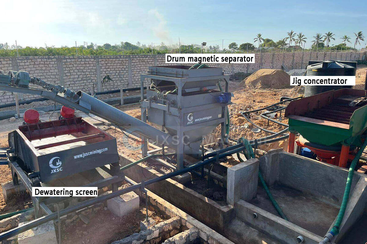 (3) The content of the 0-2mm part is about 33%, which directly enters the 1st and 2nd jig separators for separation. The concentrate from the jig separator will enter the two drum magnetic separators to refine manganese again.