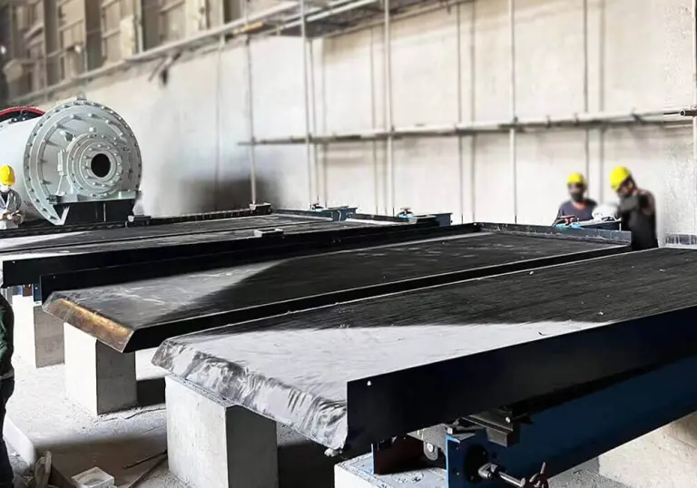3. The concentrate after magnetic separation enters the shaking table for re-selection, and then is transported to the rotary dryer for drying. Subsequently, the material enters the two electrostatic separators through a bucket elevator to sort out rutile. In order to obtain minerals of higher purity and grade, the rutile material enters the weak magnetic separation and medium magnetic separators in turn to separate magnetite and ilmenite. Then it enters the two electrostatic separators to obtain rutile with better purity.